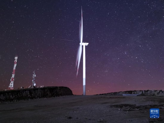 新華社記者日前驅(qū)車前往伊沃維克風(fēng)電場,在一號風(fēng)機(jī)組前停下,眼前景觀從丘陵的柔和舒緩切換成震撼的視覺體驗,只見百米風(fēng)機(jī)塔筒直指藍(lán)天,炫目矗立。塔筒上方連接輪轂葉片,凌空欲飛。