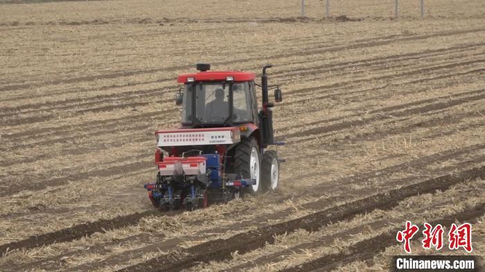 農(nóng)民正在操作新一代多功能免耕播種機開展春耕工作。 呂盛楠 攝