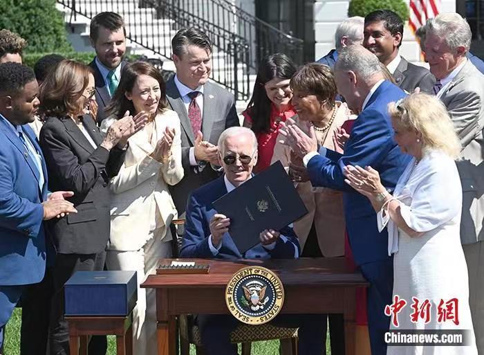 資料圖:當(dāng)?shù)貢r間8月9日,美國總統(tǒng)拜登在白宮簽署《芯片和科學(xué)法案》。 中新社記者 陳孟統(tǒng) 攝