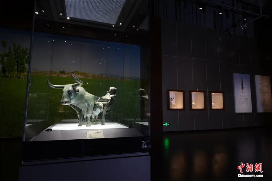 此外,還有專家延伸解讀:在古滇國(guó),虎為百獸之王,象征權(quán)威,牛則是財(cái)富和生命的標(biāo)志。牛虎銅案中的虎、牛形象成為滇人重點(diǎn)表達(dá)的主題,顯示了滇人崇虎、崇牛之情,表達(dá)了對(duì)權(quán)力、財(cái)富和生命的向往。