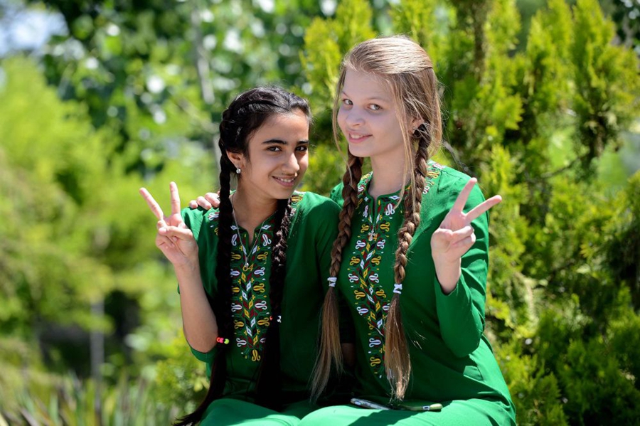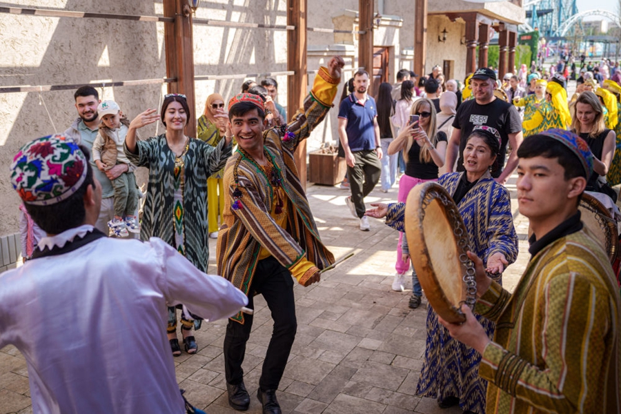 ↑人們?cè)跒跗潉e克斯坦首都塔什干慶祝納烏魯斯節(jié)。
