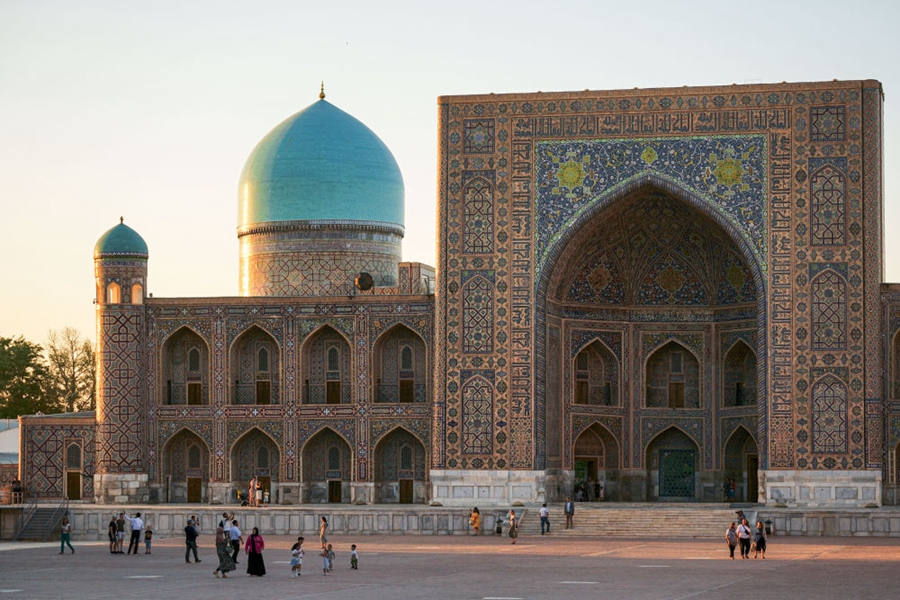 ↑烏茲別克斯坦撒馬爾罕市列吉斯坦廣場(chǎng)。