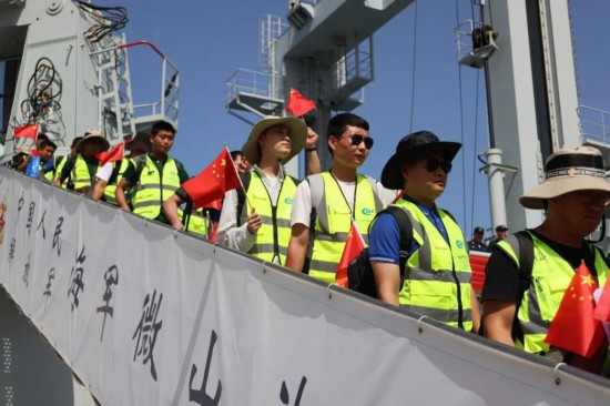 4月29日,從蘇丹撤離的中國公民乘坐中國海軍微山湖艦抵達沙特阿拉伯吉達港。新華社記者王海洲攝