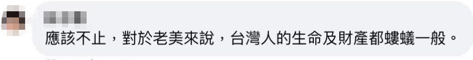 “對于老美來說,臺灣人的生命及財產(chǎn)都螻蟻一般?!?/p>