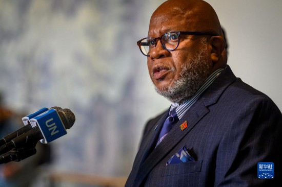 6月1日,在位于紐約的聯(lián)合國總部,特立尼達(dá)和多巴哥常駐聯(lián)合國代表丹尼斯·弗朗西斯當(dāng)選第78屆聯(lián)合國大會主席后向記者發(fā)表談話。新華社發(fā)(聯(lián)合國供圖/洛伊·費(fèi)利普攝)