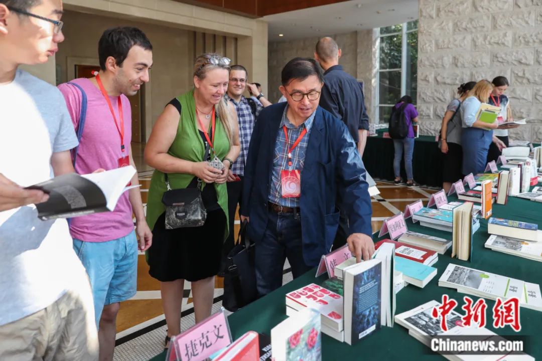 2018年,第五次漢學(xué)家文學(xué)翻譯國際研討會(huì)在貴陽舉行。圖為研討會(huì)上的翻譯作品展吸引海外翻譯家關(guān)注。賀俊怡 攝