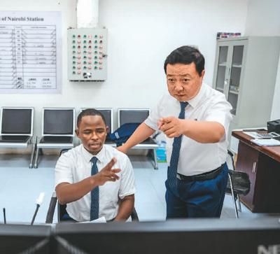 毛鑫是非洲之星鐵路運(yùn)營(yíng)公司運(yùn)輸部?jī)?nèi)羅畢車站運(yùn)轉(zhuǎn)主任,他與徒弟彼得·恩堅(jiān)加一起制定調(diào)度計(jì)劃、調(diào)控列車運(yùn)轉(zhuǎn)?!拔覀儫o(wú)保留地把國(guó)內(nèi)的技術(shù)標(biāo)準(zhǔn)帶到肯尼亞,學(xué)員已達(dá)到國(guó)內(nèi)車站同等作業(yè)標(biāo)準(zhǔn)?!泵握f(shuō),幫助肯尼亞建設(shè)第一條現(xiàn)代化鐵路,是他人生中的亮點(diǎn)。彼得表示,自己從師父身上學(xué)到了許多專業(yè)技術(shù),未來(lái)他將把知識(shí)傳授給更多人。