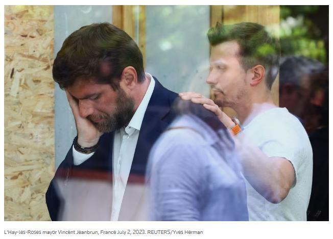 當(dāng)?shù)貢r間7月2日,家中遭襲擊后的法國拉伊萊羅斯市市長讓布蘭。圖片來源:路透社報(bào)道截圖