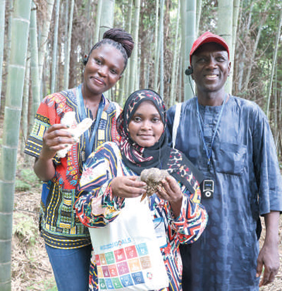 6月18日,聯(lián)合國學(xué)習(xí)團在福建省南平市順昌縣參觀林下菌草栽培竹蓀。