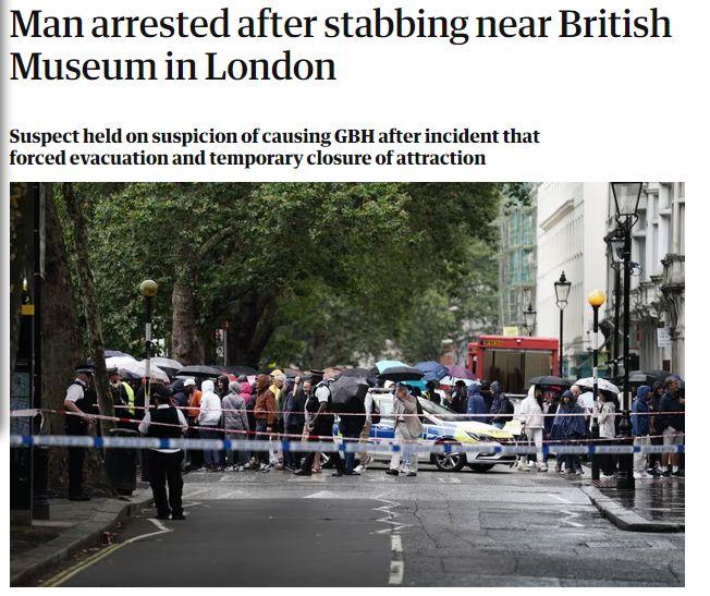 中新網(wǎng)8月9日電 據(jù)英國(guó)《衛(wèi)報(bào)》報(bào)道,當(dāng)?shù)貢r(shí)間8日,英國(guó)倫敦大英博物館附近發(fā)生持械傷人事件,一名男子被刺傷,嫌犯已被警方逮捕。