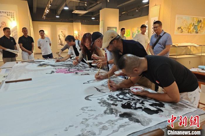 8月9日,兩岸書畫藝術(shù)家在福建泉州共繪國(guó)畫作品?!枪跇?biāo) 攝