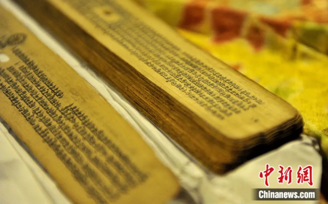 布達拉宮內(nèi)保存的梵文貝葉經(jīng)。李林 攝