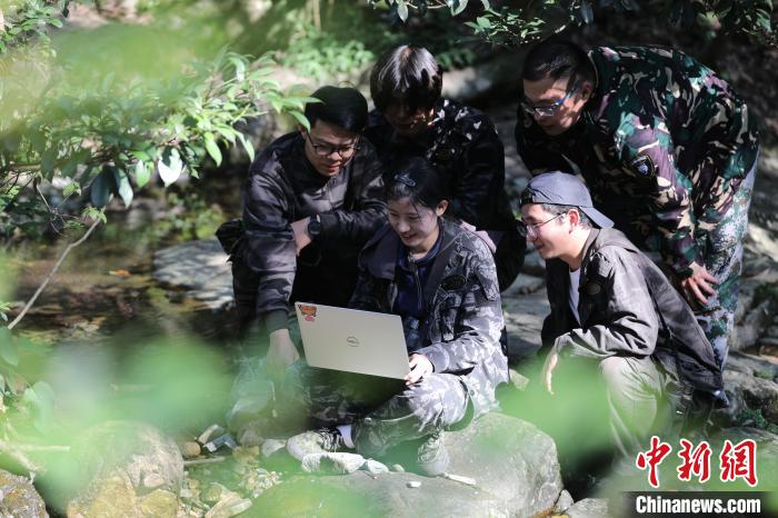 安徽大學(xué)研究團(tuán)隊(duì)在安徽省黃山市湯口鎮(zhèn)浮溪村——黃山野生猴谷開(kāi)展生態(tài)學(xué)調(diào)查。樊成柱攝