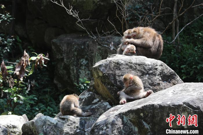 當(dāng)天,在黃山市浮溪短尾猴野外研究觀測(cè)基地內(nèi),成群結(jié)隊(duì)的黃山短尾猴或在小河溝、小溪邊翻石扒枯枝爛葉尋找食物,又或依偎在石壁上曬太陽(yáng),還有的在松石和護(hù)欄間嬉戲,賣萌調(diào)皮的樣子讓人難以忘懷。
