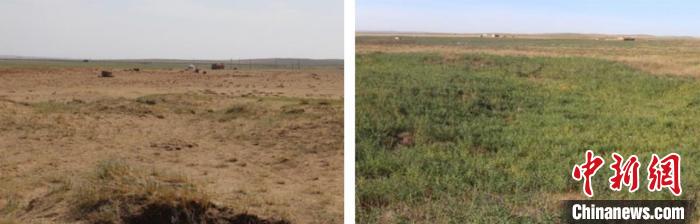 風(fēng)蝕坑治理前后對(duì)比,錫林浩特市林業(yè)和草原局供圖