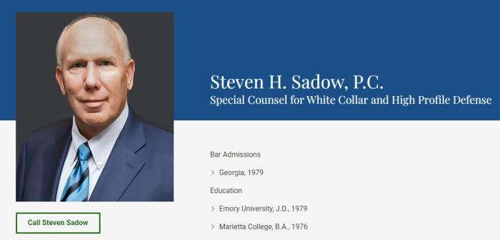 據(jù)報(bào)道,曾在佐治亞州為特朗普辯護(hù)的芬德林,將被一名來(lái)自亞特蘭大的律師薩多取代,他的網(wǎng)站簡(jiǎn)介稱(chēng)他是“為白領(lǐng)和知名人士辯護(hù)的特別律師”。