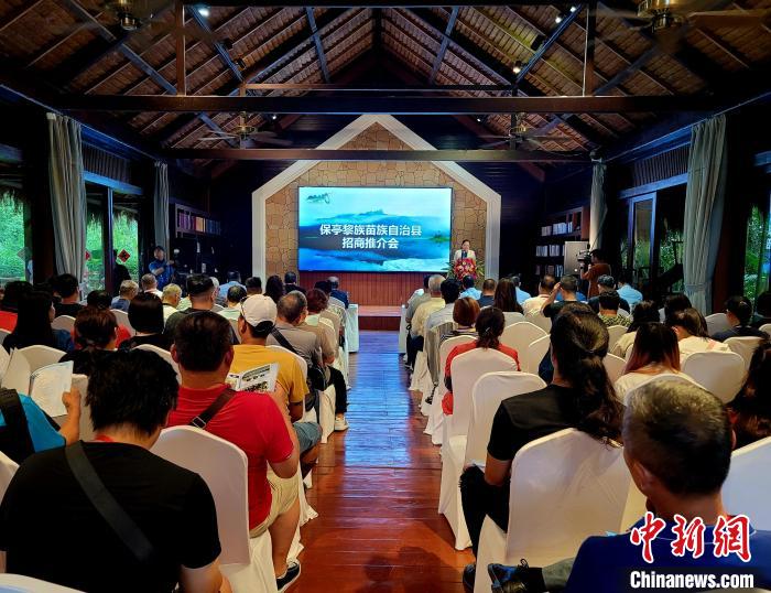 保亭縣向來訪臺灣同胞介紹當(dāng)?shù)亻_發(fā)投資項目。 王曉斌 攝