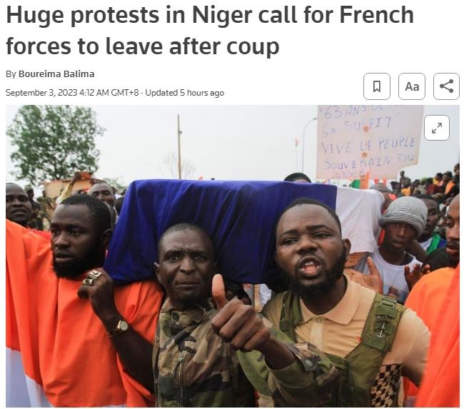 近來,尼日爾國內(nèi)的反法情緒日漸高漲。尼日爾軍政府8月31日宣布,暫停各國非政府組織、國際組織和聯(lián)合國機(jī)構(gòu)在“軍事行動區(qū)”內(nèi)活動,并下令警察驅(qū)逐法國駐尼大使。