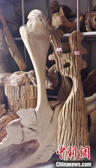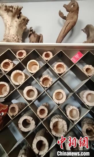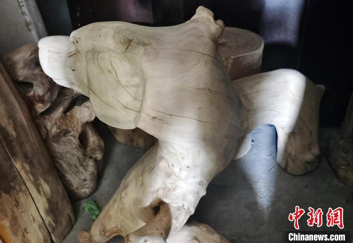 在位于新疆阿拉爾市的戴新根雕加工坊的大院內(nèi),擺放著一堆接一堆的各類待加工“材料”,從長(zhǎng)二、三米的朽木、樹根,到僅有幾十厘米長(zhǎng)的各種樹枝,至少能裝滿幾輛貨車。中新網(wǎng)記者注意到,偌大的廠房式加工“車間”內(nèi),各類正在加工的半成品約有幾十件。在左側(cè)相鄰的“車間”內(nèi),存放著20世紀(jì)70年代前后的字畫、木箱、電影放映機(jī)、音樂播放機(jī)……