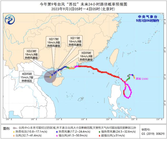 今年第9號(hào)臺(tái)風(fēng)“蘇拉”未來(lái)24小時(shí)路徑概率預(yù)報(bào)圖