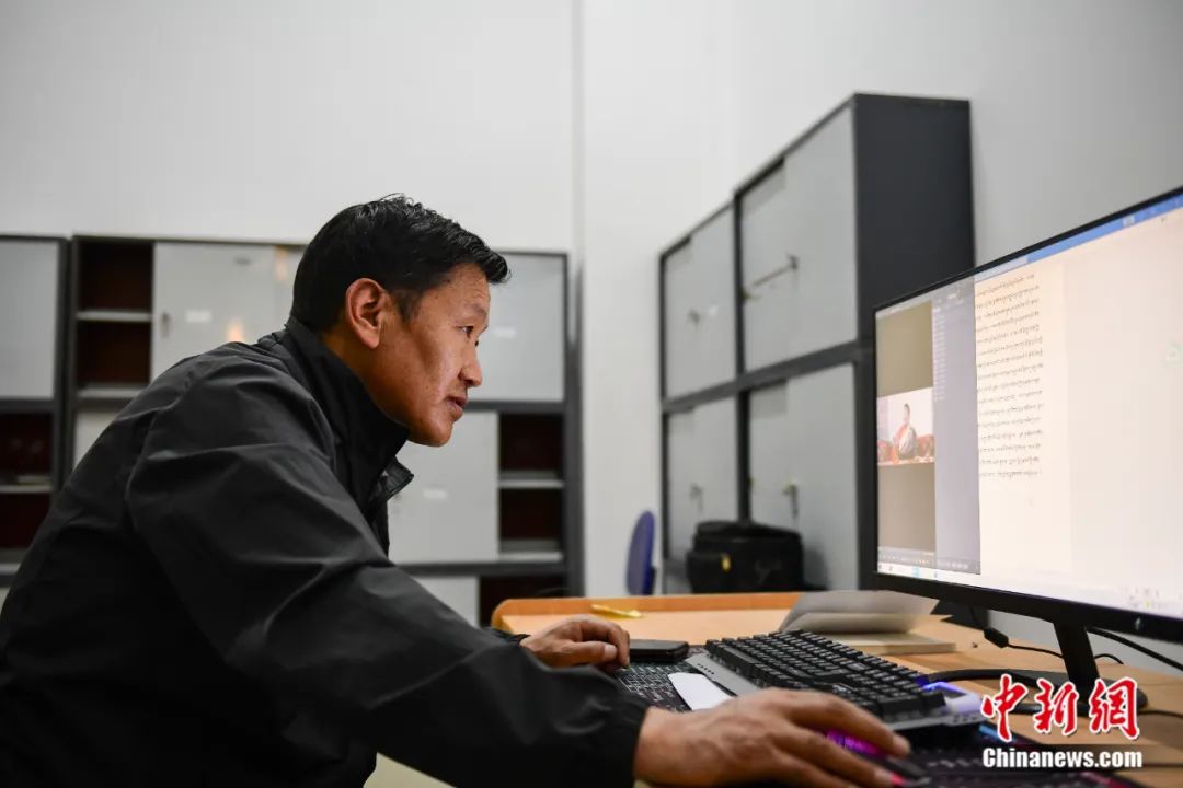 巴桑在做《格薩爾》史詩(shī)整理工作。貢嘎來(lái)松 攝