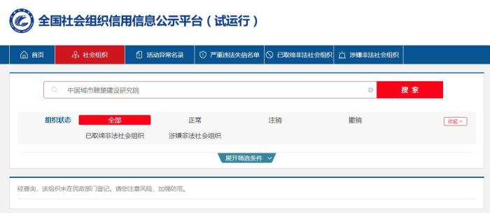 截圖自全國社會組織信用信息公示平臺(試運(yùn)行)網(wǎng)站。