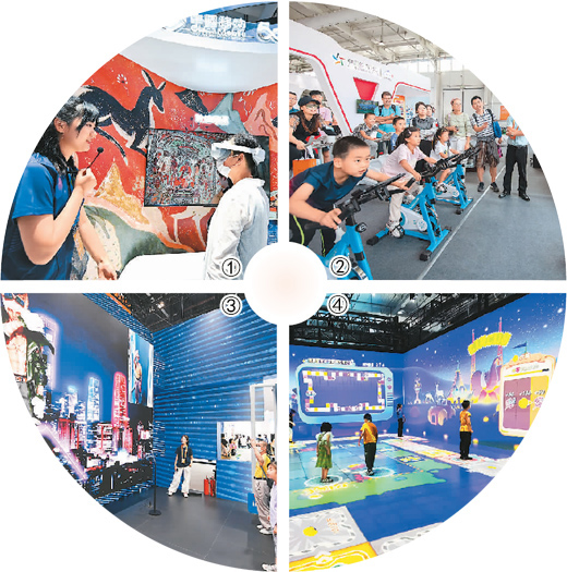 圖④:今年服貿(mào)會(huì)專題展聚焦行業(yè)熱點(diǎn)和發(fā)展趨勢(shì),覆蓋AI和元宇宙技術(shù)、消費(fèi)電子服務(wù)等內(nèi)容。圖為服貿(mào)會(huì)首鋼園展區(qū),小觀眾在體驗(yàn)沉浸式游戲。