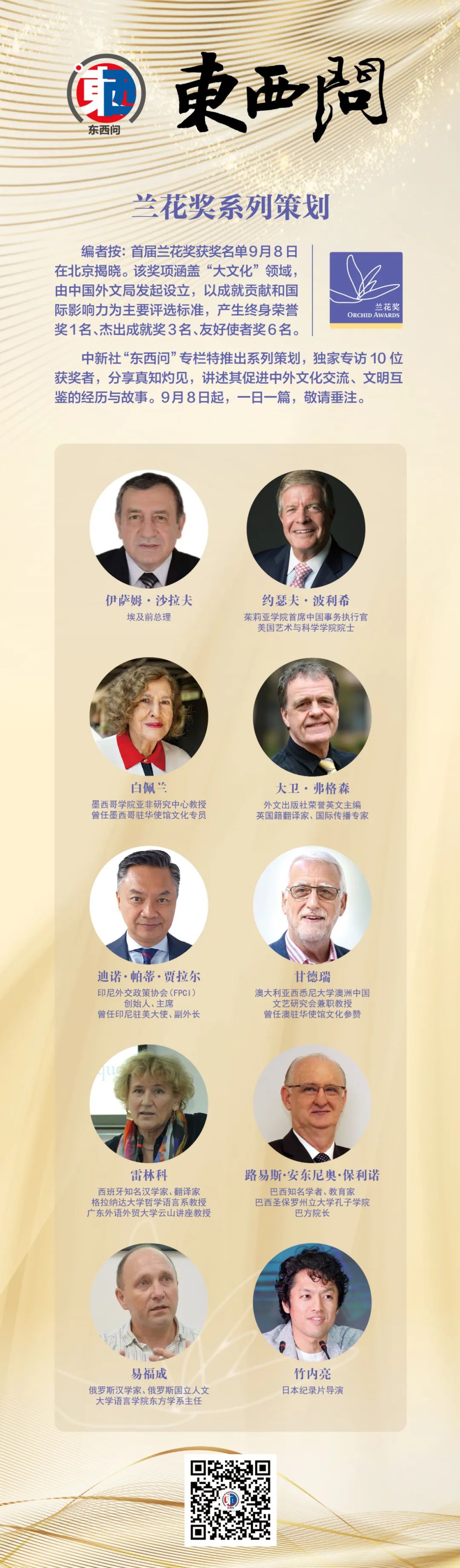 中新社“東西問”專欄特推出系列策劃,獨家專訪10位獲獎者,分享真知灼見,講述其促進中外文化交流、文明互鑒的經(jīng)歷與故事。9月8日起,一日一篇,敬請垂注。