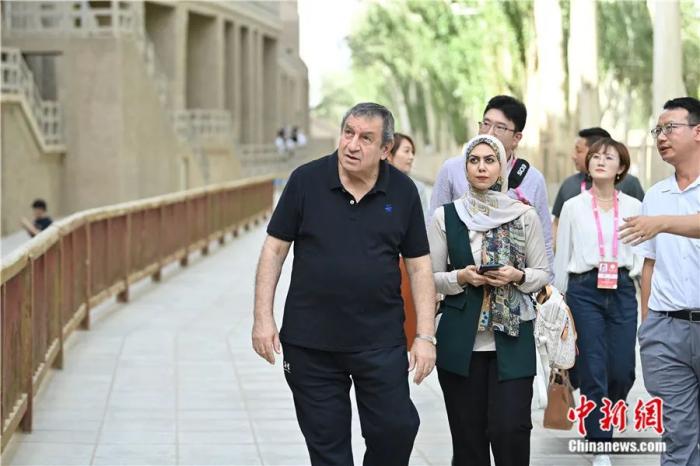 最近這次的中國之行,我還參觀考察了甘肅敦煌,游覽了莫高窟、鳴沙山和月牙泉。這是我第二次來到敦煌,埃及也有與敦煌類似的自然保護區(qū)和古老的自然、文化遺產(chǎn),比如沙漠中的湖泊,湖水中的物質(zhì)有助于人體健康,這些都是非常值得發(fā)掘的共性。