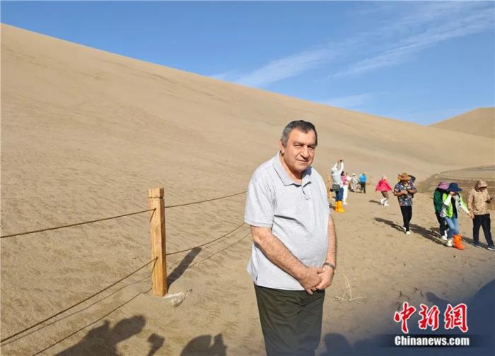 2023年9月6日,伊薩姆·沙拉夫在敦煌鳴沙山留影。崔白露 攝