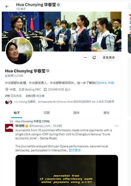 活動(dòng)現(xiàn)場(chǎng)之外,直播在海外社交媒體平臺(tái)掀起了關(guān)注的熱潮,國(guó)資小新、中國(guó)常駐聯(lián)合國(guó)代表團(tuán)、中國(guó)駐英國(guó)大使館、駐意大利大使館、駐印度尼西亞大使館、駐菲律賓大使館、駐蘇丹大使館、駐埃及大使館、駐墨西哥大使館、駐阿根廷大使館、駐特立尼達(dá)和多巴哥大使館、駐馬賽總領(lǐng)事館、駐大阪總領(lǐng)事館等逾20家官方賬號(hào)轉(zhuǎn)發(fā)點(diǎn)贊。
