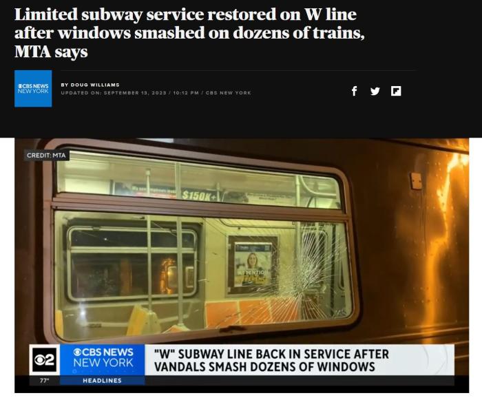 報(bào)道稱(chēng),紐約地鐵此前也遭遇過(guò)此類(lèi)破壞,2020年,在兩個(gè)月時(shí)間內(nèi),紐約地鐵7號(hào)線(xiàn)列車(chē)約有100扇車(chē)窗遭到破壞。