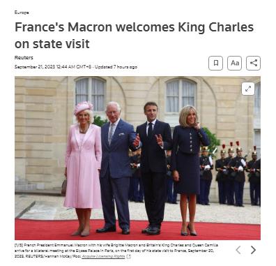 中新網(wǎng)9月21日電 綜合法新社、路透社報(bào)道,當(dāng)?shù)貢r(shí)間20日,英國(guó)國(guó)王查爾斯三世抵達(dá)法國(guó),進(jìn)行自其登基后為期三天的首次國(guó)事訪問。
