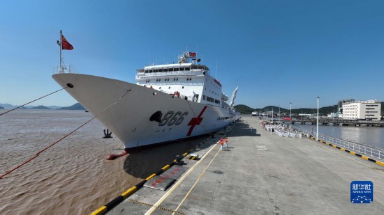 9月19日,執(zhí)行“和諧使命-2023”任務(wù)的海軍“和平方舟”號(hào)醫(yī)院船順利返回浙江舟山母港。新華社發(fā)(桂江波 攝)