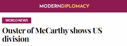 歐洲《現(xiàn)代外交》網(wǎng)站在6日的報道指出,凱文·麥卡錫(Kevin McCarthy)的美國國會眾議院議長職位于本月3日被罷免,成為自1875年以來任期最短的議長。據(jù)相關消息,在麥卡錫與民主黨人合作通過短期撥款法案以避免美國政府停擺后,少數(shù)極右翼共和黨人與民主黨人一道罷免了這位加利福尼亞州共和黨人。