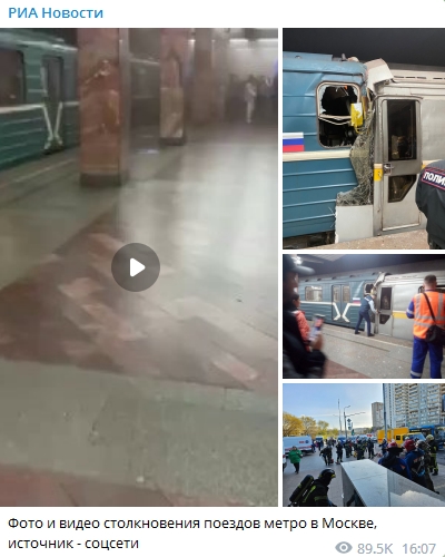 莫斯科市長索比亞寧在社交媒體上稱,事故導(dǎo)致一名列車司機受傷,正在為其提供醫(yī)療救助;沒有乘客重傷。