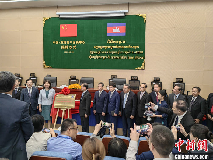 當(dāng)?shù)貢r(shí)間10月12日,“中國—柬埔寨中醫(yī)藥中心”揭牌儀式在柬埔寨金邊考斯瑪中柬友誼醫(yī)院舉行。 中新社記者 楊強(qiáng) 攝