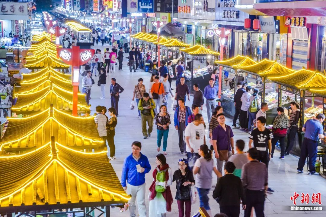 繁華熱鬧的敦煌夜市。王斌銀 攝