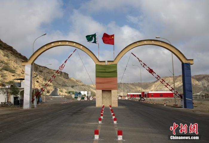 資料圖:瓜爾達(dá)港出入口的拱門。瓜爾達(dá)港是阿拉伯海沿岸的一座天然不凍良港,也是中巴經(jīng)濟走廊的南端起點。中新社記者 劉關(guān)關(guān) 攝
