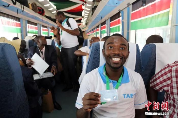 資料圖:當(dāng)?shù)貢r間2017年5月31日,蒙巴薩至內(nèi)羅畢標(biāo)準(zhǔn)軌鐵路通車儀式在肯尼亞蒙巴薩舉行,期間一名旅客展示自己的車票。中新社記者 宋方燦 攝