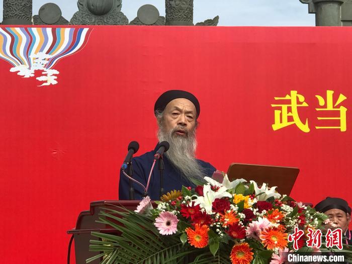 10月21日,武當(dāng)山紫霄宮方丈升座暨癸卯(2023)年全真派道士傳戒活動(dòng)典禮在湖北省丹江口市靜樂宮舉行。中國(guó)道教協(xié)會(huì)會(huì)長(zhǎng)李光富道長(zhǎng)升座武當(dāng)山紫霄宮方丈。圖為李光富致答謝辭。中新網(wǎng)記者 陳建新 攝