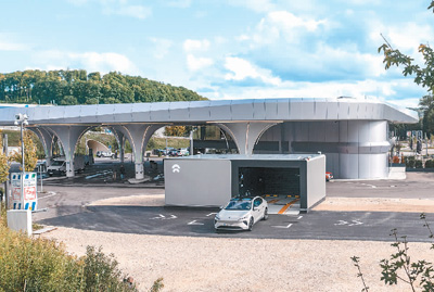 圖為位于德國柏林的蔚來換電站。
