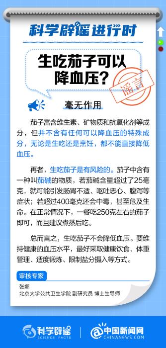 中新網10月25日電 茄子富含維生素、礦物質和抗氧化劑等成分,并不含有任何可以降血壓的成分,無論是生吃還是烹飪,都不能直接降低血壓。(來源:@科學辟謠 @中國新聞網)