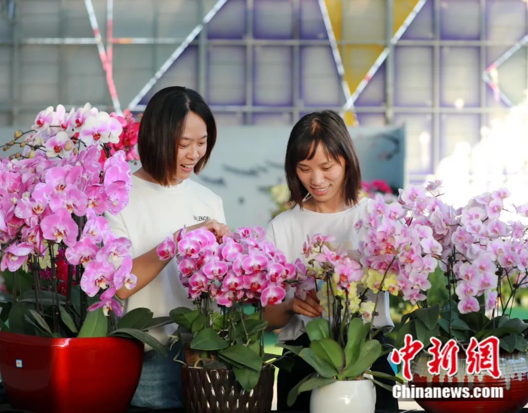 負責(zé)人喬闖行走其間,查看蘭花長勢,準(zhǔn)備著一天的工作。“再過一會,基地的主播們就會開始一天的直播,將蘭花推介給全國各地的消費者。”