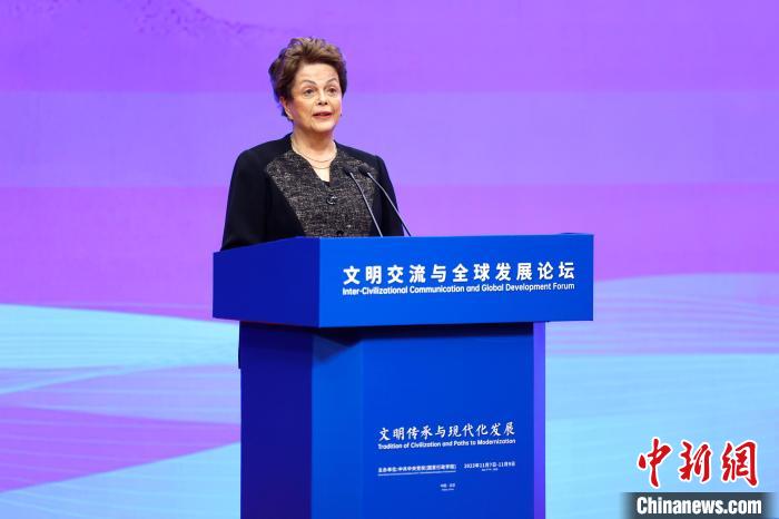 11月7日,由中共中央黨校(國家行政學院)主辦的文明交流與全球發(fā)展論壇在京開幕。圖為新開發(fā)銀行行長羅塞夫作主旨演講。富田 攝
