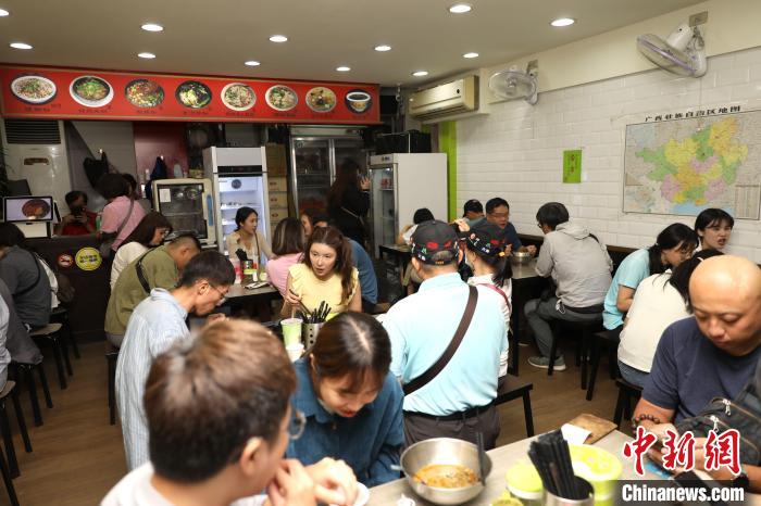 11月5日,臺(tái)北萬(wàn)華區(qū)的柳州螺螄粉店內(nèi),顧客正在用餐。 中新社記者 陳小愿 攝