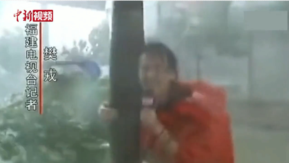 臺風暴雨來襲,他們身體力行,播報臺風的威力。