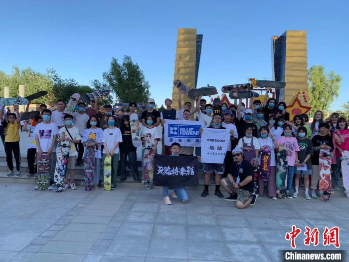 薛承祚(前排右一)和他的小伙伴們參與滑板比賽。(受訪(fǎng)者供圖)