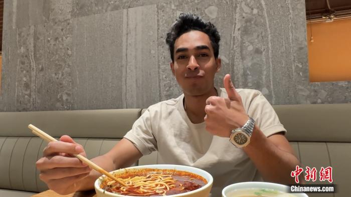 2023年10月,米都在蘭州品嘗蘭州牛肉面。王牧雨 攝