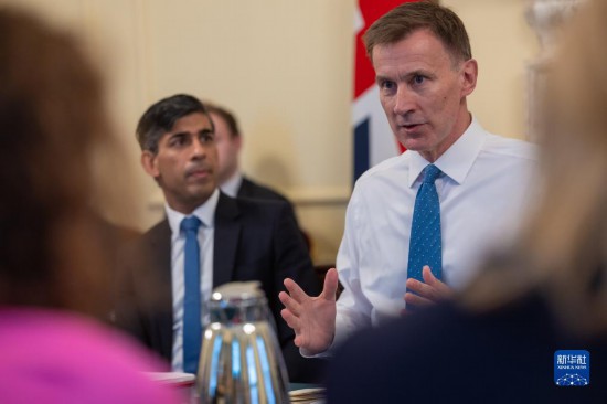 11月22日,在英國倫敦,英國財(cái)政大臣杰里米·亨特在公布秋季預(yù)算案前舉行的內(nèi)閣會(huì)議上發(fā)言。新華社發(fā)(英國首相府供圖)
